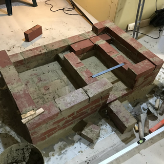 レンガ積みが完成。耐火レンガ約200個、赤レンガ600個。その他スラブ、モルタルなどで総重量2.5トン。